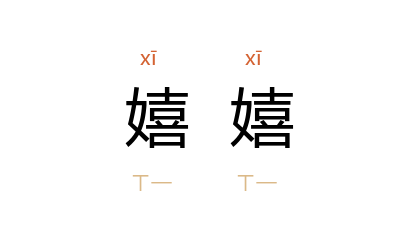 引《易·家人》“妇子嘻嘻” 唐 陆德明 《经典释文》卷二:“嘻嘻, 张 作嬉嬉, 陆 作喜喜。”