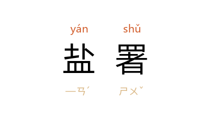 ⒈ 掌管盐务的官署。 《宋书·州郡志一》:“南沙 令,本 吴县 司盐都尉署。 吴 时名 沙中。吴 平后,立 暨阳县,割属之。