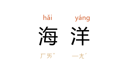 ⒈ 地球表面除陆地外的广大咸水水域。包括太平洋、大西洋、印度洋、地中海、北极海等,约占地球表面的百分之七十一。