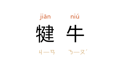 引《北史·蠕蠕传》:“蠕蠕 之人,昔来号为顽嚚,每来抄掠,驾牸牛奔遁,驱犍牛随之。”《陕北民歌选·二月里来打过春》:“犁铧肩在肩膀上,手里拉的黑犍牛。”