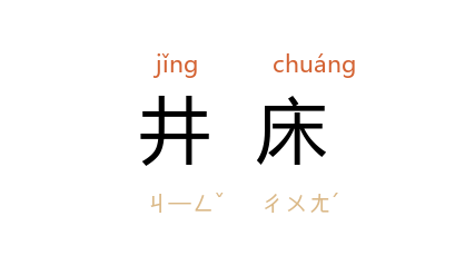 引语本《乐府诗集·舞曲歌辞三·淮南王篇》:“后园凿井银作牀,金瓶素綆汲寒浆。”唐 唐彦谦 《红叶》诗:“薜荔垂书幌,梧桐坠井牀。”宋 陆游 《秋思》诗:“黄落梧桐覆井牀,莎根日夜泣寒螿。”