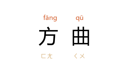 ⒈ 亦作“方麯”。 竹织方扇。多用以障面。 《北史·杨愔传》:“后有选人 鲁漫汉,自言猥贱,独不见识。一说方曲形如饼而四棱,以木为之,亦团扇之类。见 清 褚人穫 《坚瓠秘集·扇》。