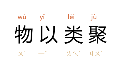 引《易经·系辞上》:「方以类聚,物以群分,吉凶生矣。」