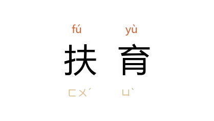 引《三国志·魏志·王朗传》:“赖先王芟除寇贼,扶育孤弱,遂令华夏復有纲纪。”孙中山 《中国问题的真解决》:“满洲 人所扶育起来的排外精神,终于在一九〇〇年的义和团骚动中达到最高峰。”瞿秋白 《饿乡纪程》二:“我幼时虽有慈母的扶育怜爱,虽有 江 南风物、清山秀水……现在都成一梦了。”