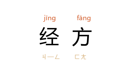 ⒉ 中医上称汉代之前的临床著作为「经方」,称汉以后医家所定的方剂为「时方」。通常指张机《伤寒论》、《金匮要略》中所记载的方剂。