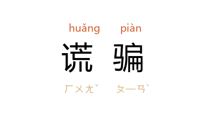 引洪深 《少奶奶的扇子》第四幕:“照道理我也不该瞒着 子明,岂不是谎骗 子明 么?”《郁达夫日记·一九三〇年三月四日》:“谈起了 苏州 前次请我去讲演时,有一位姓 吴 的青年谎骗的事情。”