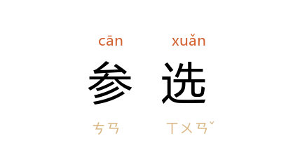 引《后汉书·桓帝纪》:“其令秩满百石,十岁以上,有殊才异行,乃得参选。”唐 封演 《封氏闻见记·铨曹》:“至于官员不充,省符追人赴京参选,远州皆率衣粮以相资送,然犹辞诉求免。”