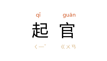 引《醒世恒言·徐老仆义愤成家》:“坐在家中,料道也没个起官的日子。”清 冯舒 《虞山妖乱志》:“尚书再罢官,奄祸急,几及之。阉败而免。 崇正 初,再起官,陞詹事,带礼部侍郎衔协理府事。”《自作孽》第二回:“看的人説道:‘我这里户科 赵老爷 服满起官,前日命下,今日太爷来,想是请他进京做官了。’”
