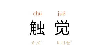 ⒈ 皮肤、毛发等与物体接触时所产生的感觉。