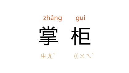 ⒈ 旧指老板或总管店铺的人。也叫“掌柜的”