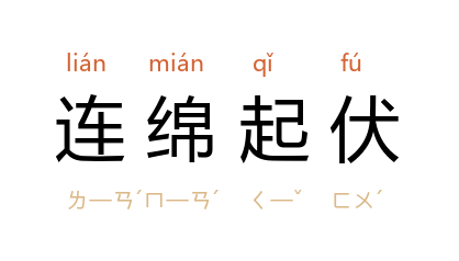 连绵起伏[ lián mián qǐ fú ]