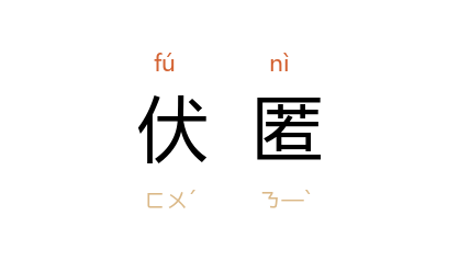 引《楚辞·九辩》:“騏驥伏匿而不见兮,凤皇高飞而不下。”唐 柳宗元 《唐故万年令裴府君墓碣》:“宿工老师,不得伏匿,皆来会堂下。”清 蒲松龄 《聊斋志异·阿英》:“盗纵羣队穷搜,凡伏匿巖穴者,悉被杀掳。”鲁迅 《汉文学史纲要》第六篇:“秦 既焚烧诗书,坑诸生于 咸阳,儒者乃往往伏匿民间,或则委身于敌以舒愤怨。”