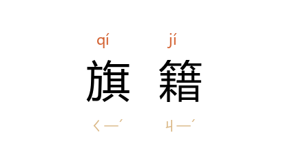 ⒈ 清代时,满州、蒙古、汉军各旗旗人的户籍,称为「旗籍」。