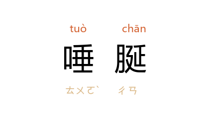 引《太平御览》卷四九二引 汉 桓谭 《新论》:“鄙人有得脠酱而美之。及饮,恶与人共食,即小唾其中;而共者因涕其酱,遂弃而俱不得食焉。彼王公利欲取天下时,乃乐与人分之,及已得而重爱不肯予,是昔唾脠之类。”