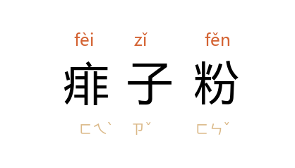 ⒈ 用滑石粉、氧化锌、水杨酸、硫磺、薄荷脑等加香料制成的一种药粉,扑在身上可以吸收汗液,防治痱子。