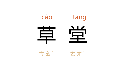 ⒈ 茅草盖的堂屋。旧时文人常以“草堂”名其所居,以标风操之高雅。