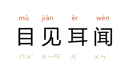 ⒈ 亲自看到、听到。宋·苏轼〈石钟山记〉:「事不目见耳闻,而臆断其有无可乎?」也作「耳闻目见」。