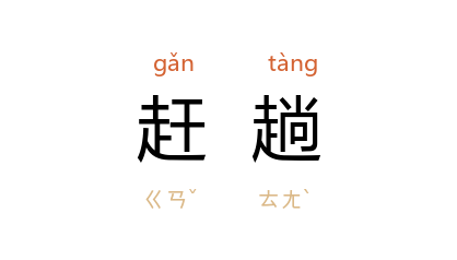 引老舍 《龙须沟》第三幕:“赶趟,等我说完最要紧的一段儿。”周立波 《暴风骤雨》第一部十一:“不行,得赶快,要不就不赶趟了。”