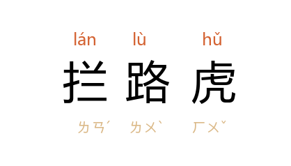 ⒈ 拦路抢劫的匪徒。元·施惠也作「拦街虎」。