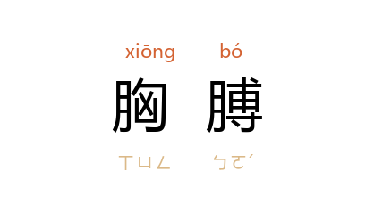 引唐 李复言 《续玄怪录·张逢》:“自视其爪牙之利,胸膊之力,天下无敌。”聂绀弩 《谈<娜拉>》:“这样的‘娜拉’,说起来现在该有三十多岁了。形体上大约有一双裹坏过的大脚,扁平又窄狭的胸膊。”