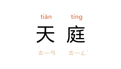 ⒉ 术数用语。相术家或医生称人两眉之间为「天庭」。