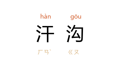 引南朝 宋 颜延之 《赭白马赋》:“膺门沬赭,汗沟走血。”《后汉书·马援传》“备此数家骨相以为法” 李贤 注引 汉 马援 《铜马相法》:“腹下欲平满,汗沟欲深长。”唐 杜甫 《郑典设自施州归》诗:“叹尔疲駑駘,汗沟血不赤。”