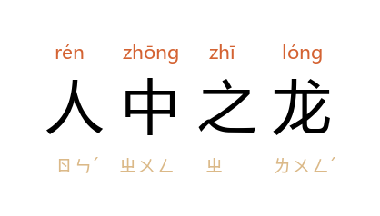 引《晋书·卷九四·隐逸传·宋纤传》:「名可闻而身不可见,德可仰而形不可睹,吾而今而后知先生人中之龙也。」《三国演义·第五六回》:「操曰:『刘备,人中之龙也,生平未尝得水。今得荆州,是困龙入大海矣。孤安得不动心哉!」