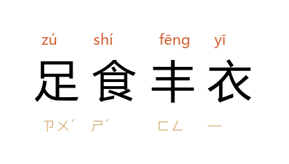 引《秋胡戏妻·第二折》:「从早起,到晚夕,上下唇并不曾粘著水米,甚的是足食丰衣?」《孤本元明杂剧·浣花溪·第一折》:「端的五谷收成,足食丰衣,更有那桑麻万里,有粮食户户堆积。」