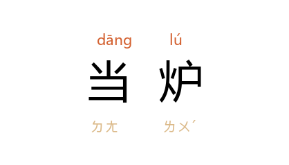 ⒊ 當鑪:亦作“当壚”。《汉书·司马相如传上》作“当卢”。