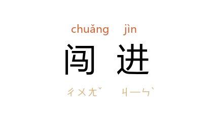 ⒈ 没受到允许,而擅自冲进他人屋内。