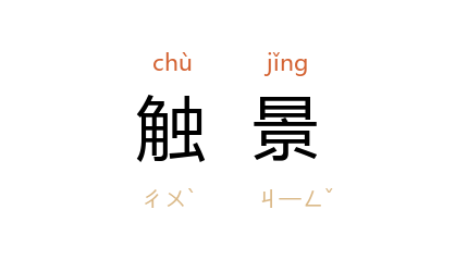 引元 黄溍 《题清华亭》诗:“触景幽兴多,接物道机熟。”元 王冕 《金陵行送余局官》诗:“高楼如天酒如海,触景令人生感慨。”清 赵翼 《瓯北诗话·李青莲诗》:“诗人遇题触景,即有吟咏,岂必皆有所为耶?”