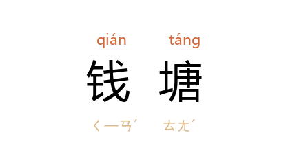 ⒉ 亦作“钱唐”。古县名。地在今浙江省。古诗文中常指今杭州市。