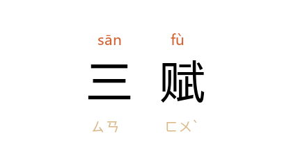 引唐 杜甫 《奉留赠集贤院崔于二学士》诗:“谬称三赋在,难述二公恩。”宋 叶适 《寄题钟秀才咏归堂》诗:“五兵铸就杀气动,却写三赋祥光流。”