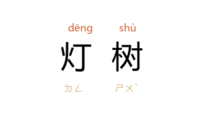 引隋炀帝 《正月十五日于通衢建灯夜升南楼》诗:“灯树千光照,花燄七枝开。”五代 王仁裕 《开元天宝遗事·百枝灯树》:“韩国夫人 置百枝灯树,高八十尺,竖之高山上,元夜点之,百里皆见,光明夺月色也。”《旧唐书·杨绾传》:“綰 应声指铁灯树曰:‘灯盏柄曲。’”