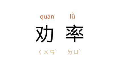 引《后汉书·张禹传》:“﹝ 张禹 ﹞劝率吏民,假与种粮,亲自勉劳,遂大收穀实。”宋 曾巩 《劝农诏》:“岂拊循劝率,有所未备歟?抑吏怠而忽不能宣究歟?”《元典章·圣政二·救荒灾》:“诸遇灾伤缺食,或能不恡己物,劝率富有之家协同周济困穷不致失所者,从本处官司保申上司申部呈省。”