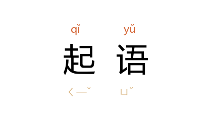引明 胡应麟 《少室山房笔丛·艺林学山二·緐知一》:“四诗以全首论,当是 皇甫冉 第一,而 李端 次之, 佺期、无竞 俱景联佳,而 沉 之起语颇生涩。”明 沉德符 《野获编·内阁二·命名被遇》:“适数日前,言官建白,有‘重治本事’为起语,上頷之。”