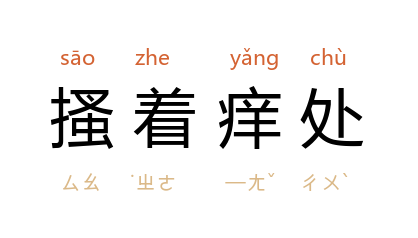 引语本 唐 杜牧 《读韩杜集》诗:“杜 诗 韩 集愁来读,似倩 麻姑 痒处抓。”鲁迅 《朝花夕拾·<狗·猫·鼠>》:“我是常不免于弄弄笔墨的,写了下来,印了出去,对于有些人似乎总是搔着痒处的时候少,碰着痛处的时候多。”