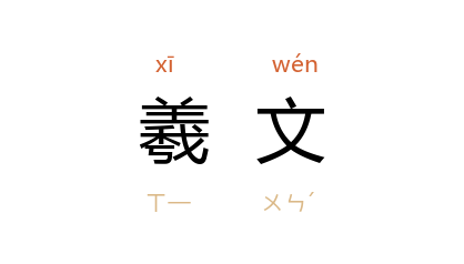 引《后汉书·班固传下》:“今论者但知诵 虞 夏 之《书》,咏 殷 周 之《诗》,讲 羲 文 之《易》。”李贤 注:“伏羲 画八卦, 文王 作卦辞。”唐 白居易 《哭刘敦质》诗:“哭罢持此辞,吾将詰 羲 文。”