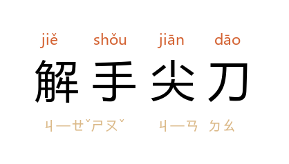 引《水浒传》第一〇三回:“﹝ 王庆 ﹞便悄地到街坊买了一把解手尖刀,藏在身边,以防不测。”亦称“解手刀”。 《警世通言·俞伯牙摔琴谢知音》:“伯牙 於衣裌间取出解手刀,割断琴絃,双手举琴,向祭石臺上,用力一摔,摔得玉軫抛残,金徽零乱。”《醒世姻缘传》第二回:“把牀头上那把解手刀拔出鞘来,袖在袖内,看他来意如何。”