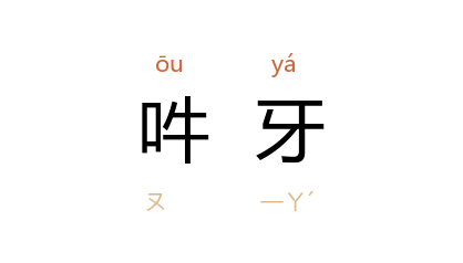 引《汉书·东方朔传》:“狋吽牙者,两犬争也。”唐 杜牧 《贺平党项表》:“众虺盘结,羣犬吽牙。”宋 洪迈 《夷坚甲志·惠吉异术》:“为至其居,命斸地丈许,得苍狗,吽牙怒视,左右皆恐。”