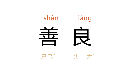 ⒈ 和善,心地好。亦指和善而不怀恶意的人。