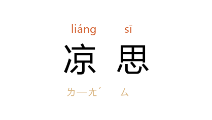 引唐 李贺 《昌谷诗》:“鸿瓏数铃响,羈臣发凉思。”王琦 汇解:“凉思,凄凉之思。”宋 苏舜钦 《暑景》诗:“吟餘晴月上,凉思入尊罍。”明 陈所闻 《傍妆台·秋夜溪上孙子真胡长白对雨》曲:“池馆客淹留,坐深凉思动高秋。”