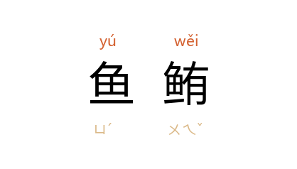 引《礼记·礼运》:“龙以为畜,故鱼鮪不淰。”宋 方夔 《立冬前后大雷电》诗:“雨下如注翻四溟,黑风吹落鱼鮪腥。”《林则徐日记·道光二十二年十一月五日》:“﹝泽﹞东西宽约十里,南北长倍之,波浪涌激,颇似 洪泽湖,向无舟檝,亦无鱼鮪之利,惟水鸟飞翔其间,人亦不能取也。”