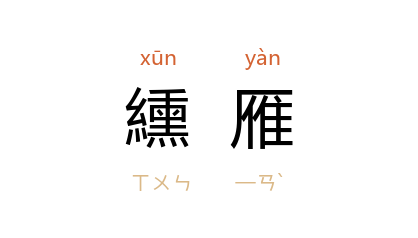 引《隋书·礼仪志四》:“梁 大同 五年, 临城公 婚,公夫人於皇太子妃为姑姪,进见之制,议者互有不同。令曰:‘纁雁之仪,既称合於二姓,酒食之会,亦有姻不失亲。’”宋 苏辙 《西掖告词·杨王第三女封安定郡主》:“兹择良士亦为外亲,将修纁鴈之仪,肇锡汤沐之奉。”
