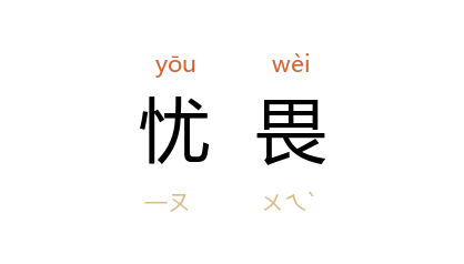 引南朝 梁 萧统 《<陶渊明集>序》:“宜乎与大块而荣枯,随中和而任放;岂能戚戚劳于忧畏,汲汲役于人间。”唐 元稹 《班肃授尚书司封员外郎制》:“驰竞之徒,能於寒暑之际,不以忧畏移其薄厚之道者鲜矣。”宋 范仲淹 《同年魏介之会上作》诗:“心存闕下还忧畏,身在樽前且笑歌。”