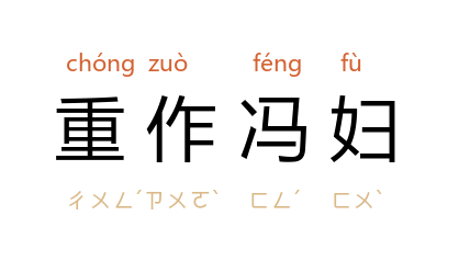 ⒈ 春秋时晋国勇士冯妇善打虎,后改从善行,成为善士,不再打虎。有一次大家在野外追一只老虎,老虎负嵎顽抗,大家不敢靠近,正巧冯妇经过,大家都很高兴迎接他,冯妇居然攘臂下车再次打虎。典出《孟子·尽心下》。后以重作冯妇比喻重操旧业。也作「再作冯妇」、「又作冯妇」。