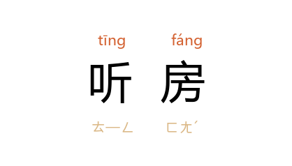 引清 黄轩祖 《游梁琐记·易内奇案》:“涉俗,凡合卺初夜,以听房占喜兆,迷信不拔。”刘真 《春大姐》:“社长 赵金山 也强硬地说:‘去去去!今晚谁也不许听房,这几天他们太辛苦了,你们心疼人家,等你们娶媳妇的时候,人家才能心疼你们。’”