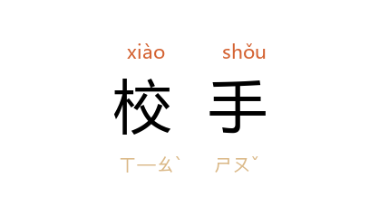 即校刀手。京剧《连环套》:“此马的主人,日间有三百名家丁,夜晚有五百名校手,不分昼夜,轮流看守此马。”