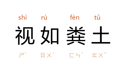 ⒈ 粪土:秽土;脏土。看得如同秽土那样恶劣、下贱。比喻极为蔑视。