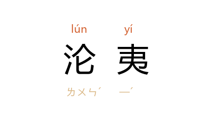 引《新唐书·刘瑑传》:“王夷甫 相 晋,崇尚浮虚,以述流品,卒致沦夷。”清 王夫之 《薑斋诗话》卷二:“世教沦夷,乐崩而降于优俳。”陶曾佑 《论文学之势力及其关系》:“噫!之二国者,既匪墟於商业,又匪裂於兵威,然国界虽存,国魂早逝,固有之一般原素,潜沦夷於乌托之邦。”